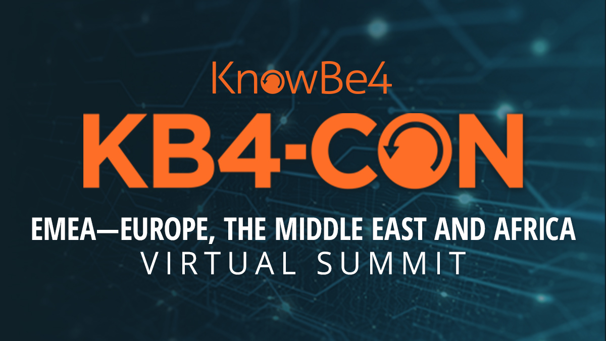KnowBe4 (NASDAQ: KNBE) (www.KnowBe4.com), the provider of the world’s largest security awareness training and simulated phishing platform, will be hosting KB4-CON EMEA (Europe, Middle East and Africa) (https://bit.ly/3nih5HU), an extension of the highly successful KB4-CON U.S. event, which attracted over 10,000 registrants. The completely virtual, highly engaging, cybersecurity-focused event is designed for any CISO, security awareness training administrator and cybersecurity professional in the EMEA region and beyond. KB4-CON EMEA is a fully virtual event that will also feature special content for KnowBe4 customers and partners.